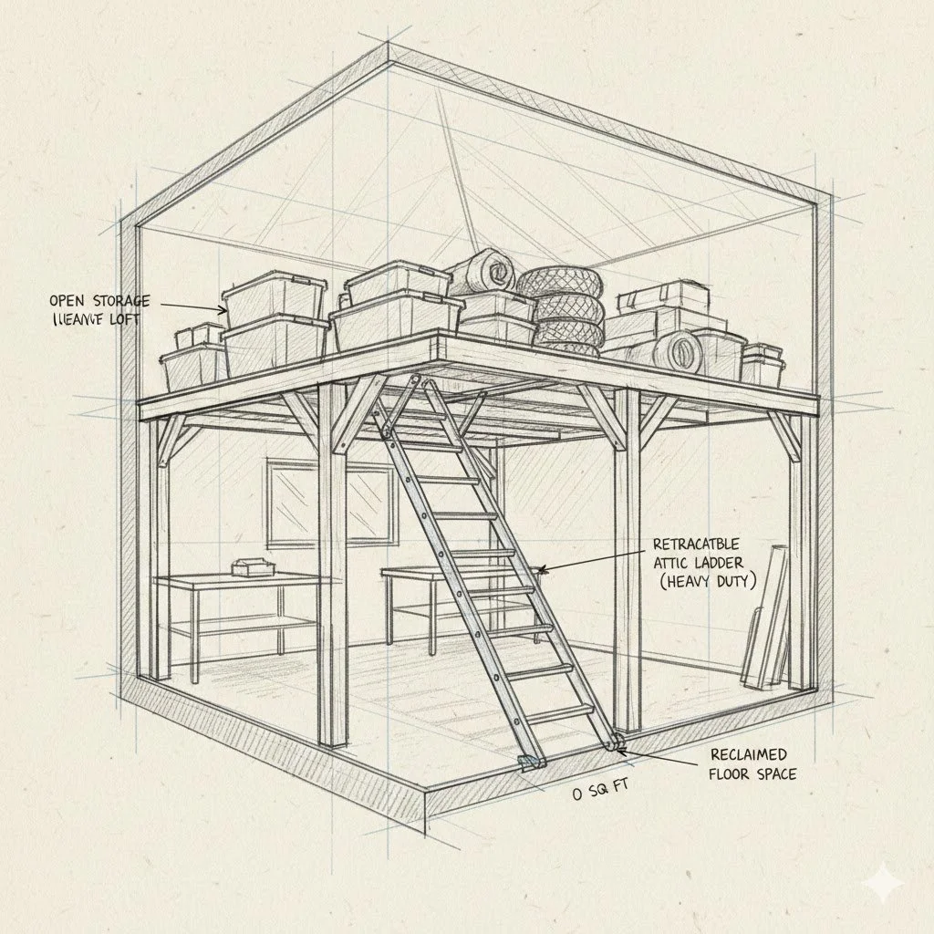 The Thesis: In small builds and garages, vertical access should be invisible until you actually need it.