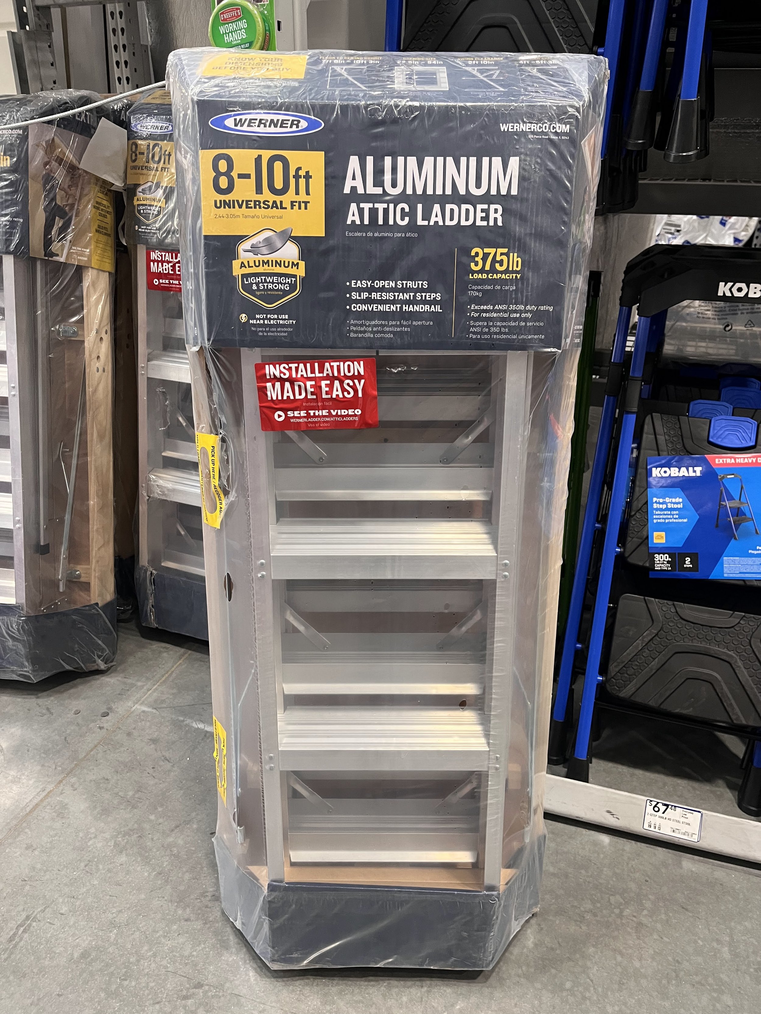 Ease of Use: Do your homework: there are modern gas-strut or spring-assisted ladders that can be opened with one hand. Or stick with the traditional pull-down ladders. That’s what we did. See the photo below.